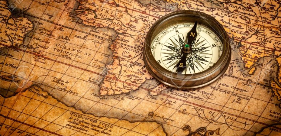 Μια πυξίδα, ξεφτισμένη και παλιά.