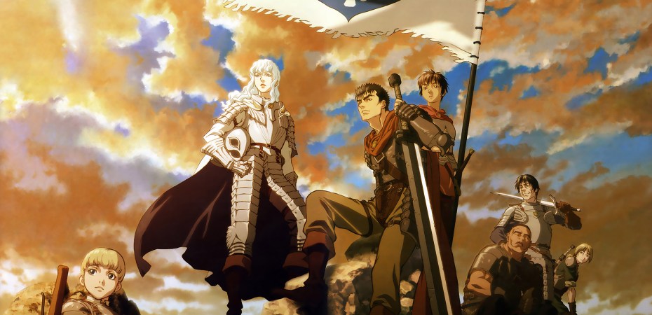 Η ιστορία έχει να κάνει με τον Guts έναν μισθοφόρο πολεμιστή όπου η μοίρα του τον φέρνει στην ομάδα του Γερακιού και γνωρίζει τον ασυνήθιστα γοητευτικό, θηλυπρεπή Griffith, που σκοπός της ζωής του είναι να γίνει βασιλιάς ή μάλλον Θεός. Ο Griffith παθαίνει μια εμμονή με τον Guts, τον βλέπει ως φίλο αλλά και ως ένα σύντροφο που θα είναι για πάντα δίπλα του στην μάχη και μη. Έχουμε όμως και την Casca την υπαρχηγό και μοναδική γυναίκα της συντροφιάς του Γερακιού, η οποία μισεί τον Guts γιατί: «ποιος είναι αυτός ο καινούργιος που μπαίνει στην ομάδα και ο Griffith μου έχει μάτια μόνο για αυτόν;» ναι, η Casca είναι ερωτευμένη με τον Griffith, αλλά εκείνος έχει μάτια μόνο για τον Guts. Συνεχίζουμε όμως με την ιστορία, όταν ο Guts φεύγει από την ομάδα, τα πράγματα αρχίζουν να σκουραίνουν με τον Griffith να κάνει μη σωστές κινήσεις όπως να κάνει σεξ με μια πριγκίπισσα, ενώ ξέρει ότι θα τιμωρηθεί άμα το μάθουν και όταν το μαθαίνει ο βασιλιάς φυσικά τον αιχμαλωτίζει και τον βασανίζει για 2 χρόνια. Να πούμε εδώ και ένα έξτρα πραγματάκι, ότι ο βασιλιάς ήθελε την κόρη του για τον εαυτό του – αν με πιάνετε! Η συνέχεια είναι τραγική, καθώς ο Guts τον απελευθερώνει αλλά ο Griffith δεν είναι αυτός που ήταν, έχει γίνει ένα σκελετωμένο πράγμα που δεν μπορεί να κουνηθεί γιατί του έχουν κόψει όλες τις αρτηρίες. Γίνεται όμως κάτι απρόσμενο, οι δαιμονικές θεότητες εμφανίζονται και κάνουν τον Griffith έναν από αυτούς, με αποτέλεσμα ο Griffith να γίνει δαίμονας και να σκοτώνει όλη του την ομάδα και να βιάζει την Casca μπροστά στα μάτια του Guts, με την οποία τελικά είχαν γίνει ζευγάρι.