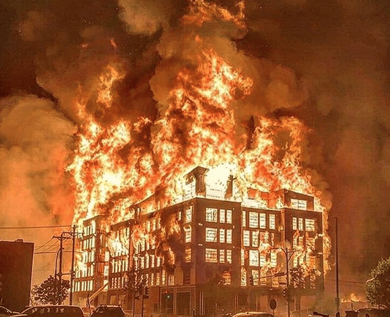 Featured Image: Minneapolis is set ablaze during the Riots following the murder of George Floyd.